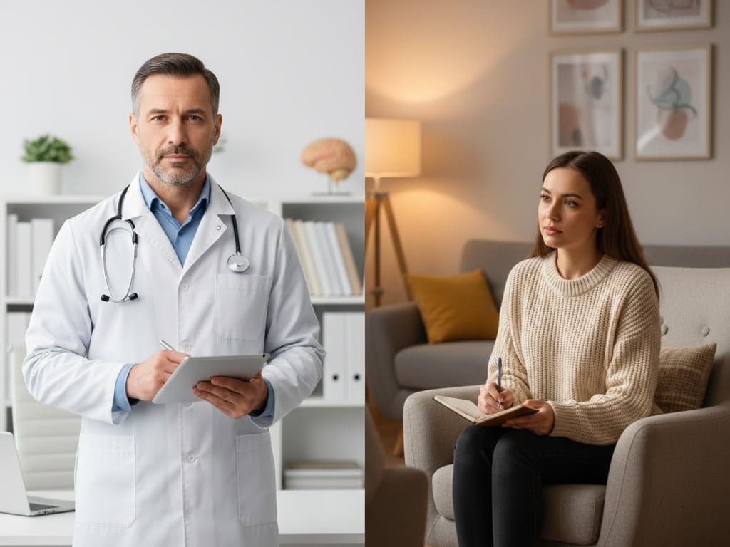 • Zaburzenia lękowe: Podobnie – psychiatra wyciszy objawy somatyczne, a psycholog pomoże zrozumieć lęk.