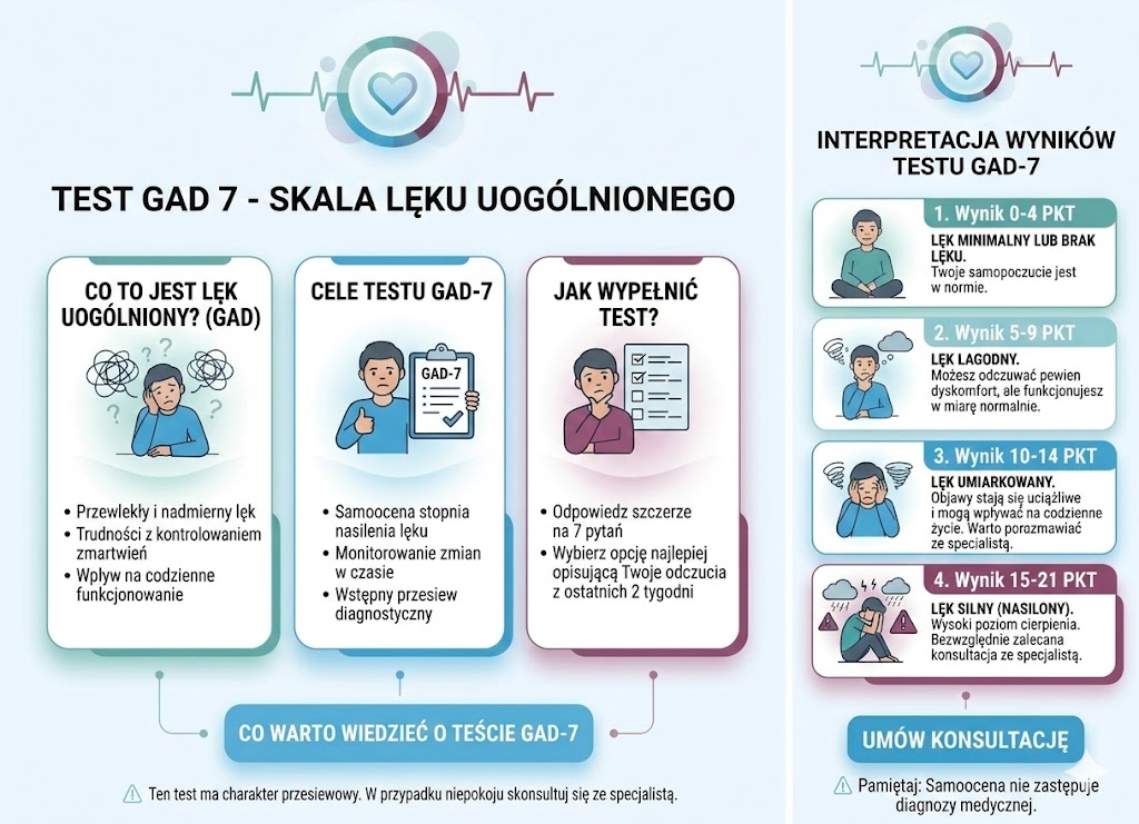 Ważne: Test GAD-7 jest narzędziem przesiewowym, a nie ostateczną diagnozą medyczną. Jest jednak doskonałym punktem wyjścia do rozmowy z lekarzem.